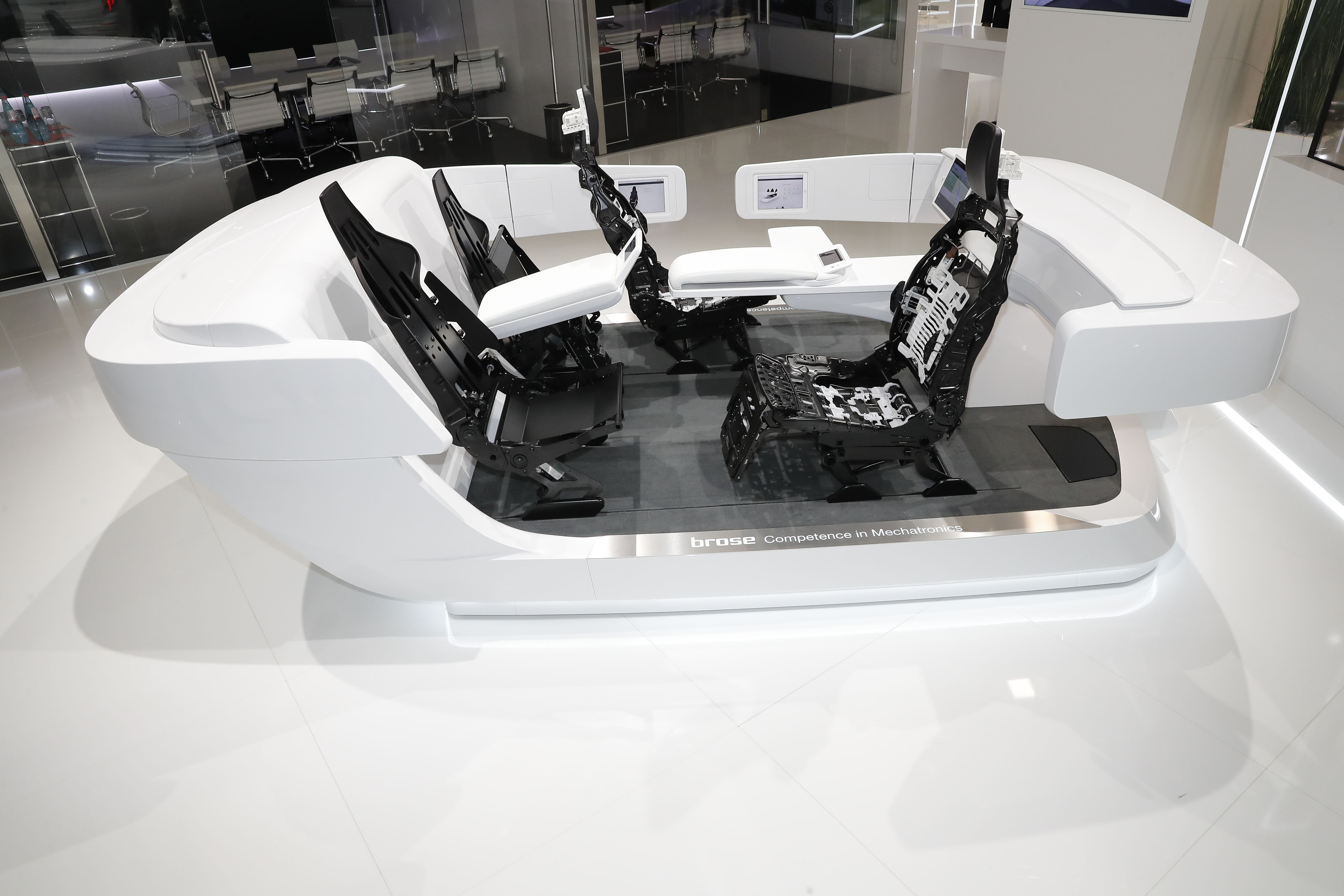 To create the interior of the future, Brose expanded its expertise in seat systems to the entire vehicle interior, with adjusters for the steering wheel, display and footrests as well as multifunctional consoles that adapt to different seating positions. Passengers can switch between different interior configurations as they like while on the road. The system is easy to operate, for example using an app. Connecting and coordinating all of the functions demonstrates the supplier’s electronics expertise, making it the ideal development partner for all adjustment systems in the interior.