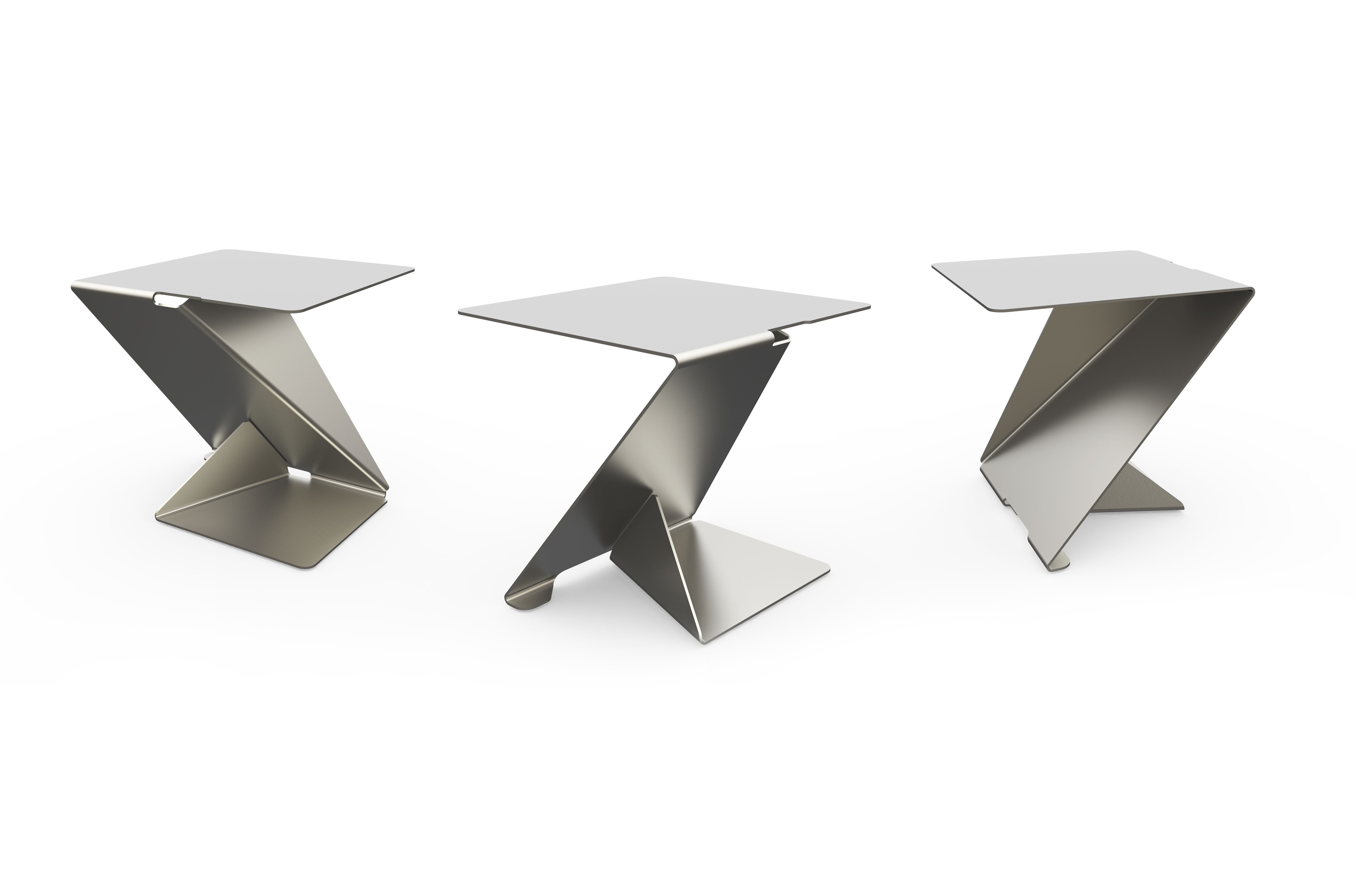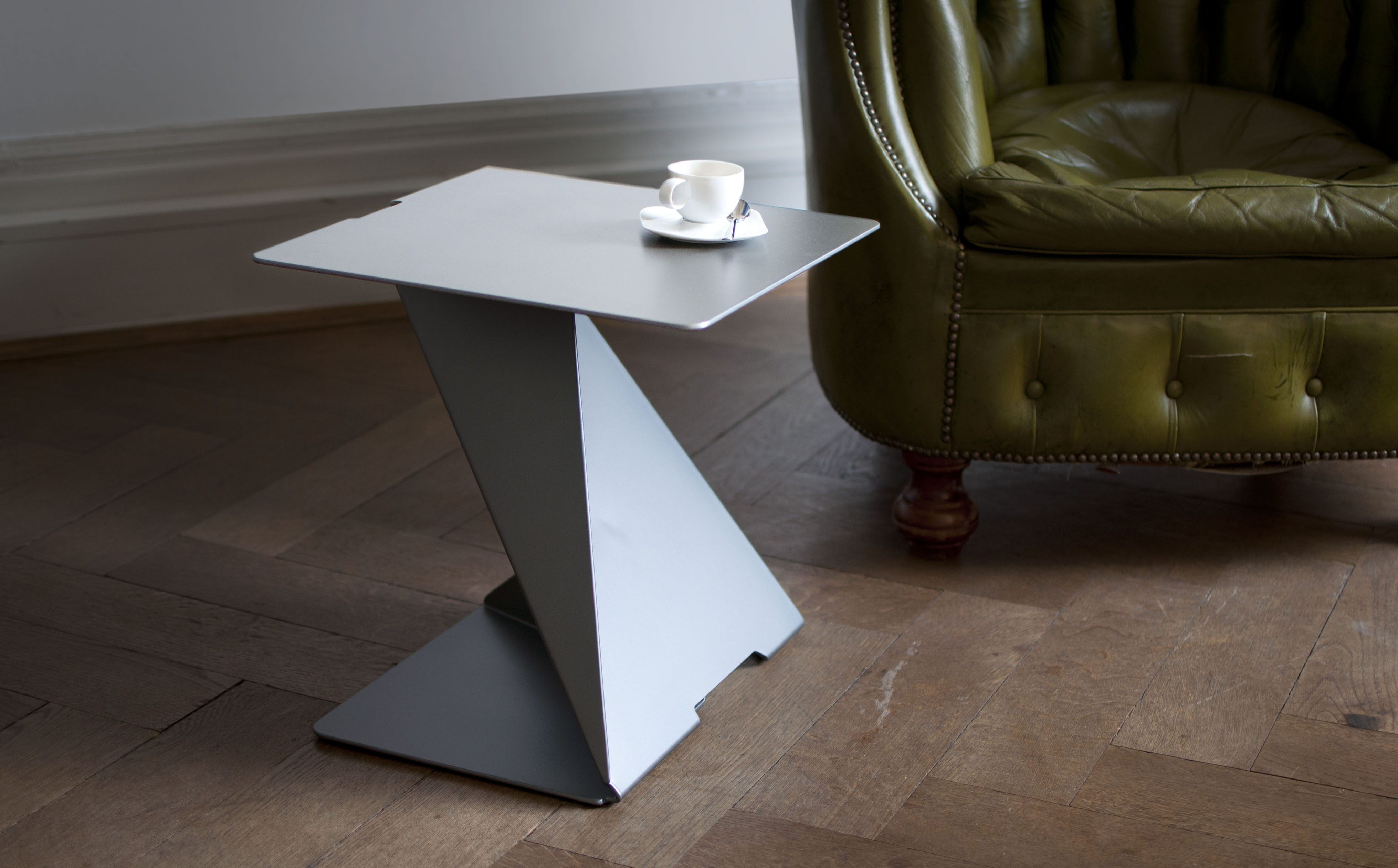 In-house development of a sidetable made from a single, waste-optimized and folded piece of sheet metal.
