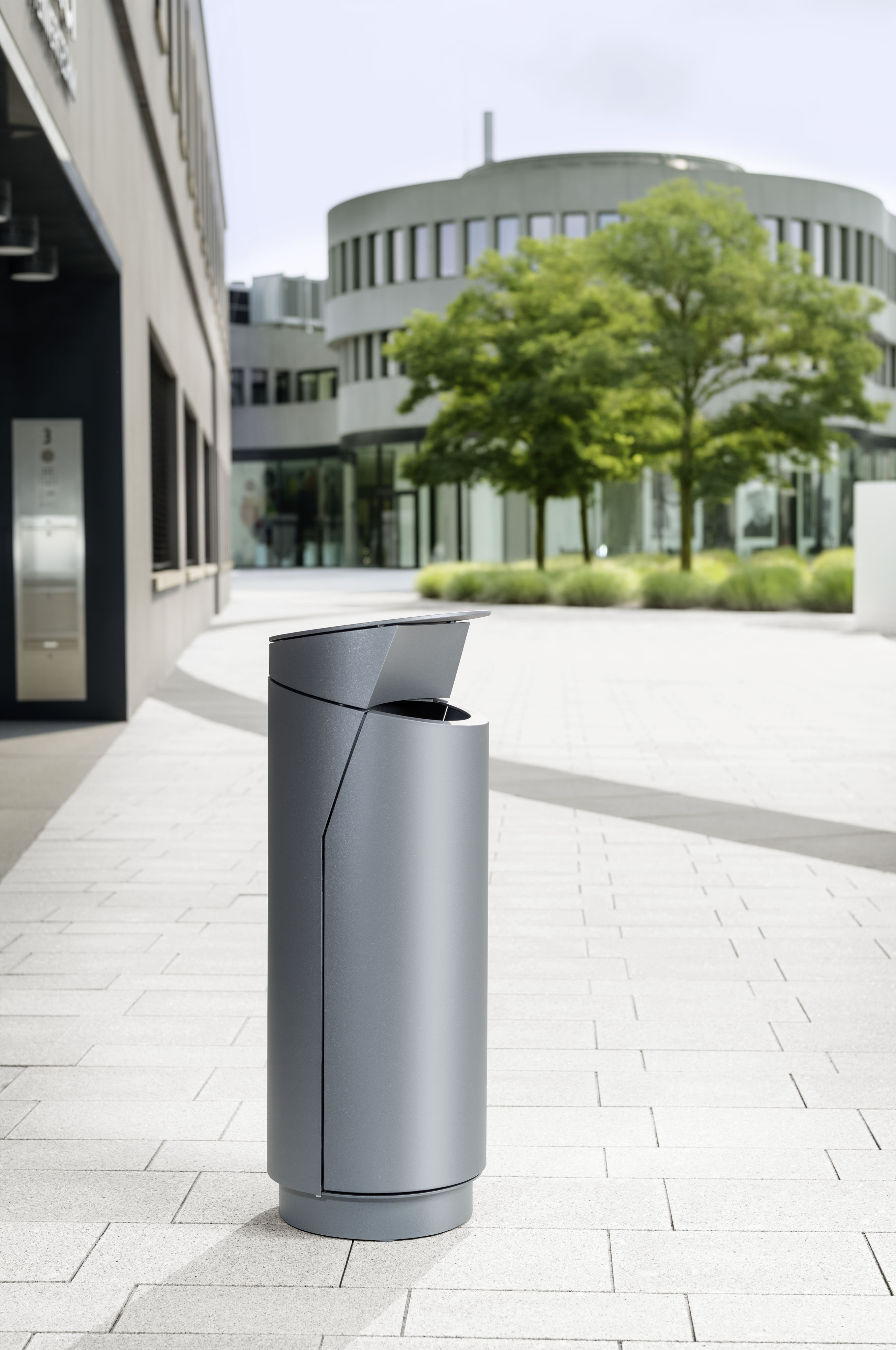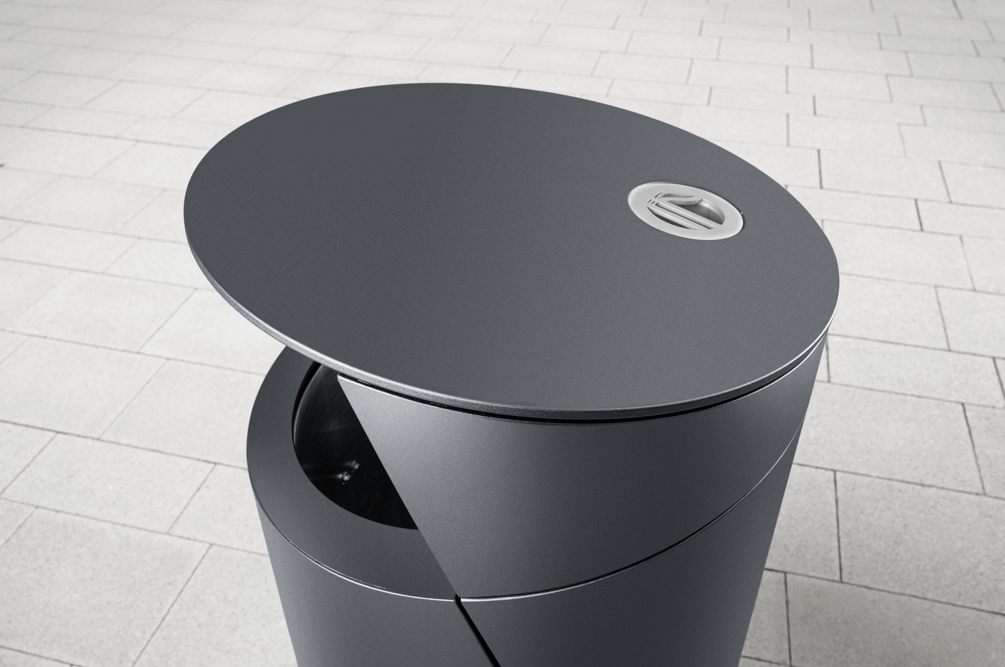 The newly developed waste container system TRIER with its modular design enables a multitude of usage scenarios. The formally clear overall appearance conveys a friendly invitation to use the waste container due to its compact design with “uplifting head”. At the same time, the TRIER model system is particularly resistant to vandalism and corrosion and the entire body is constructed noise-reducingly. The integrated ashtray function in the inner container significantly simplifies the handling during emptying.