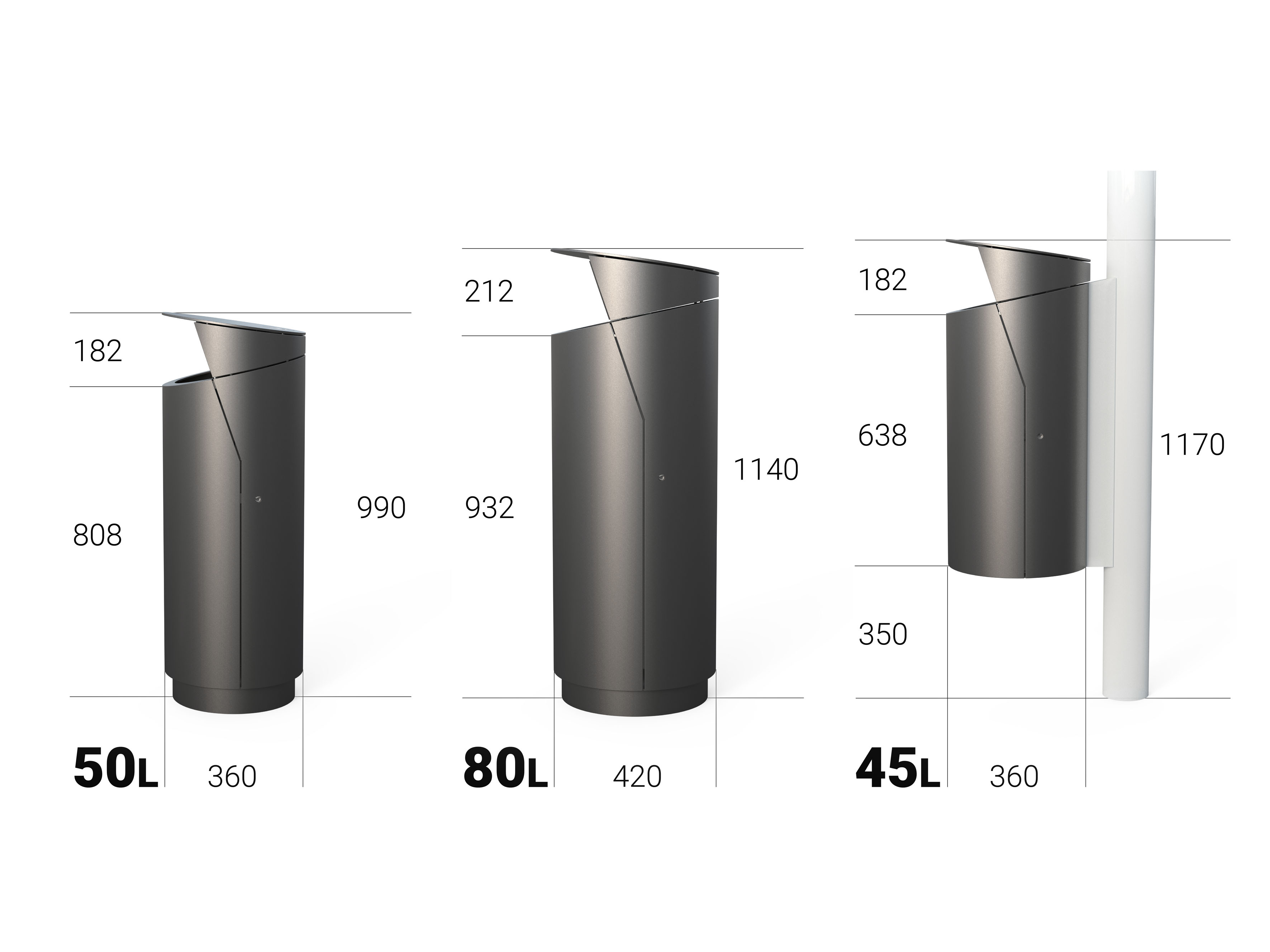 H 990mm • ⌀ 360mm • 50 L